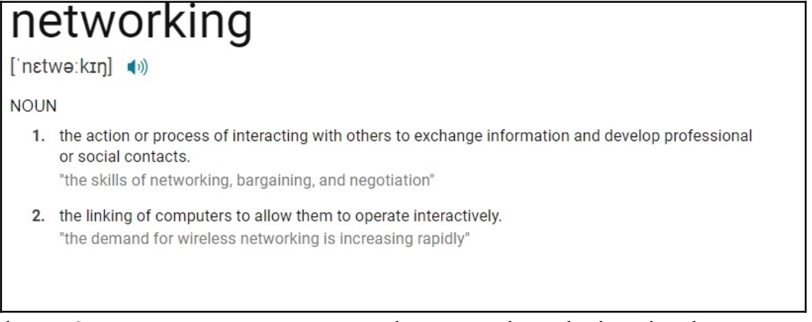 “the exchange of information or services among individuals, groups, or institutions specifically: the cultivation of productive relationships for employment or business”.